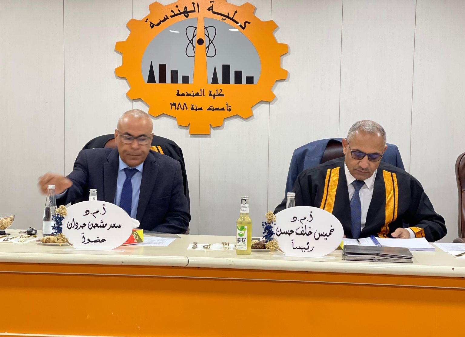 شارك الاستاذ المساعد الدكتور (خميــــس خلـــف حســـن ) عميد كليتنا بصفته رئيساً للجنة الناقشة والاستاذ المساعد الدكتور (ايــــاد عطيـــة عبــــدالكافي ) رئيس قسم الكهرباء في كليتنا في لجنة المناقشة بصفته عضواً ومشرفاً في كلية الهندسة/ جامعة تكريت للطالب (منصور عليوي علي ) في قسم الكهرباء الموسومة