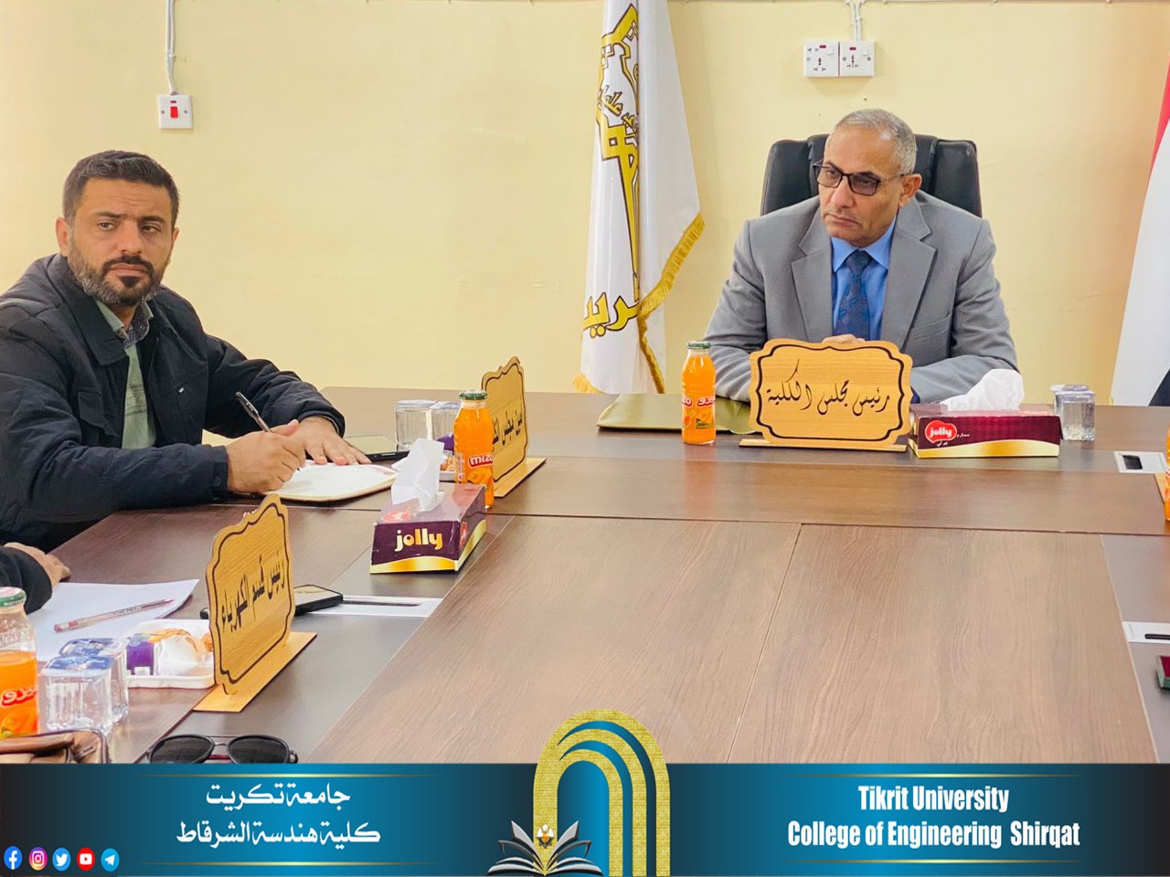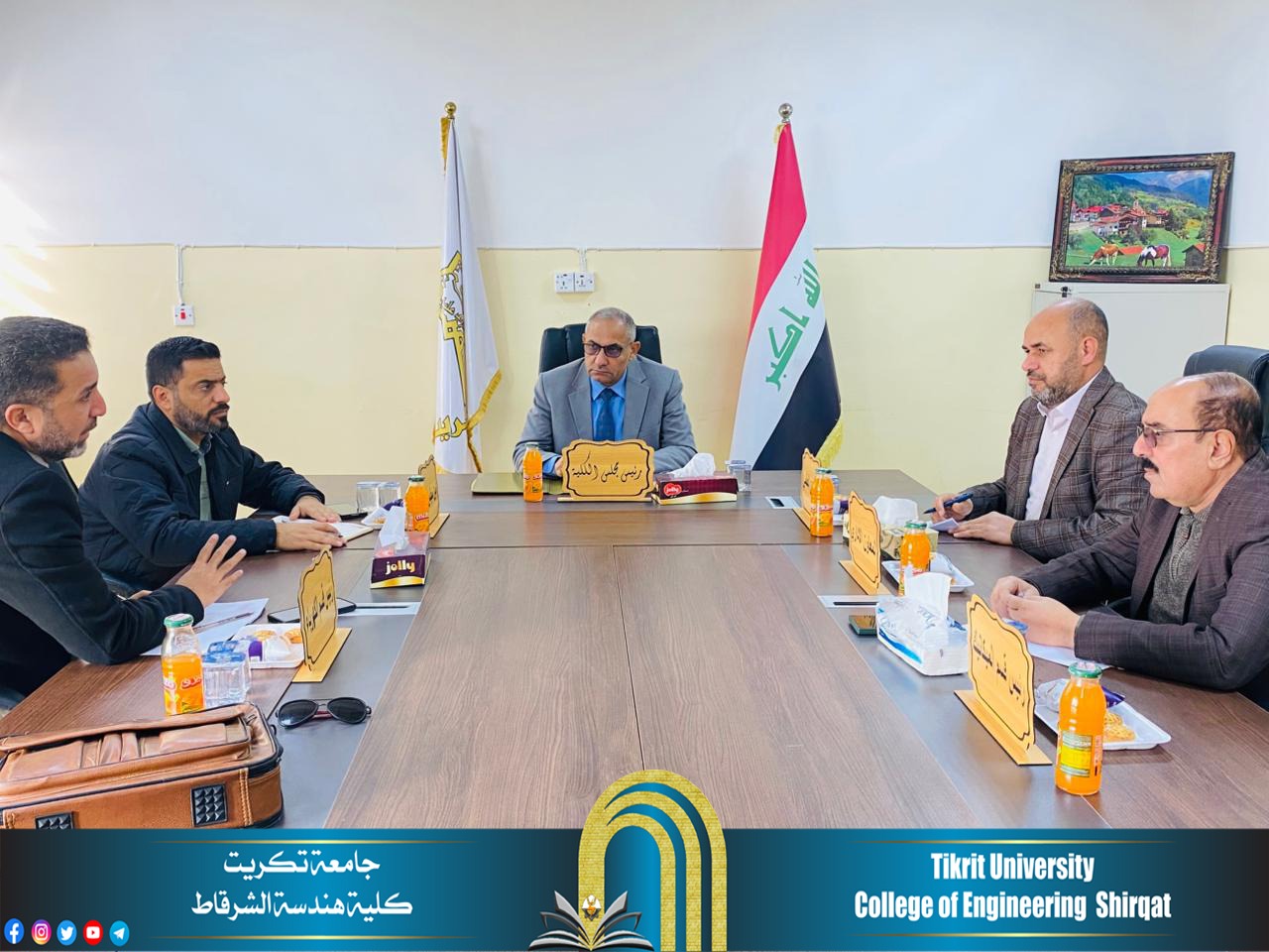 عقد مجلس كلية هندسة الشرقاط جلسته الثالثة للعام الدراسي 2024/2025 يوم الاثنين الموافق 16/12/2024 لمناقشة اهم القضايا التي تخص الكلية واهمها الاستتعدات لامتحانات الكورس الاول وتهيئة القاعات الامتحانية والمستلزمات الضرورية وجداول الدروس وجداول الامتحانات ووضع الخطط الازمة وكذلك ناقش المجلس اهم القضايا التي تخص الكلية والطلبة .