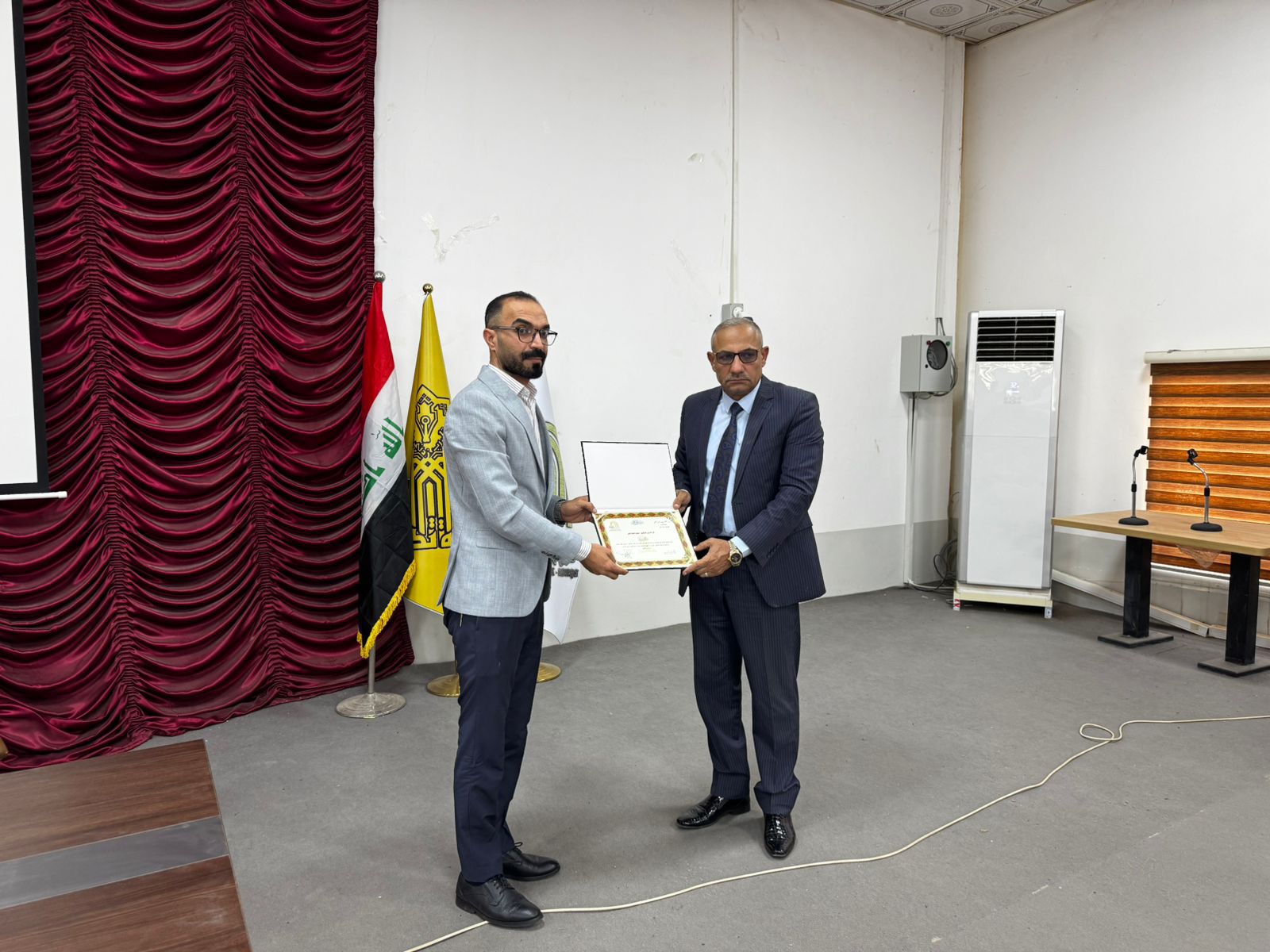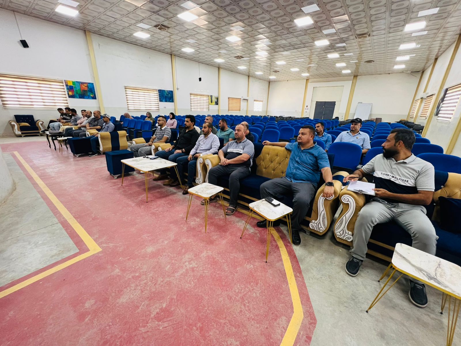 والاستاذ المساعد الدكتور سياف عبد حسين مدير مركز التعليم المستمر تقيم شعبة الشؤون القانونية في كليتنا وبالتعاون مع قسم المديرية العامة لتربية /صلاح الدين وبالتعاون أيضاً مع قسم الشؤون العلمية في رئاسة الجامعة دورة علمية بعنوان :