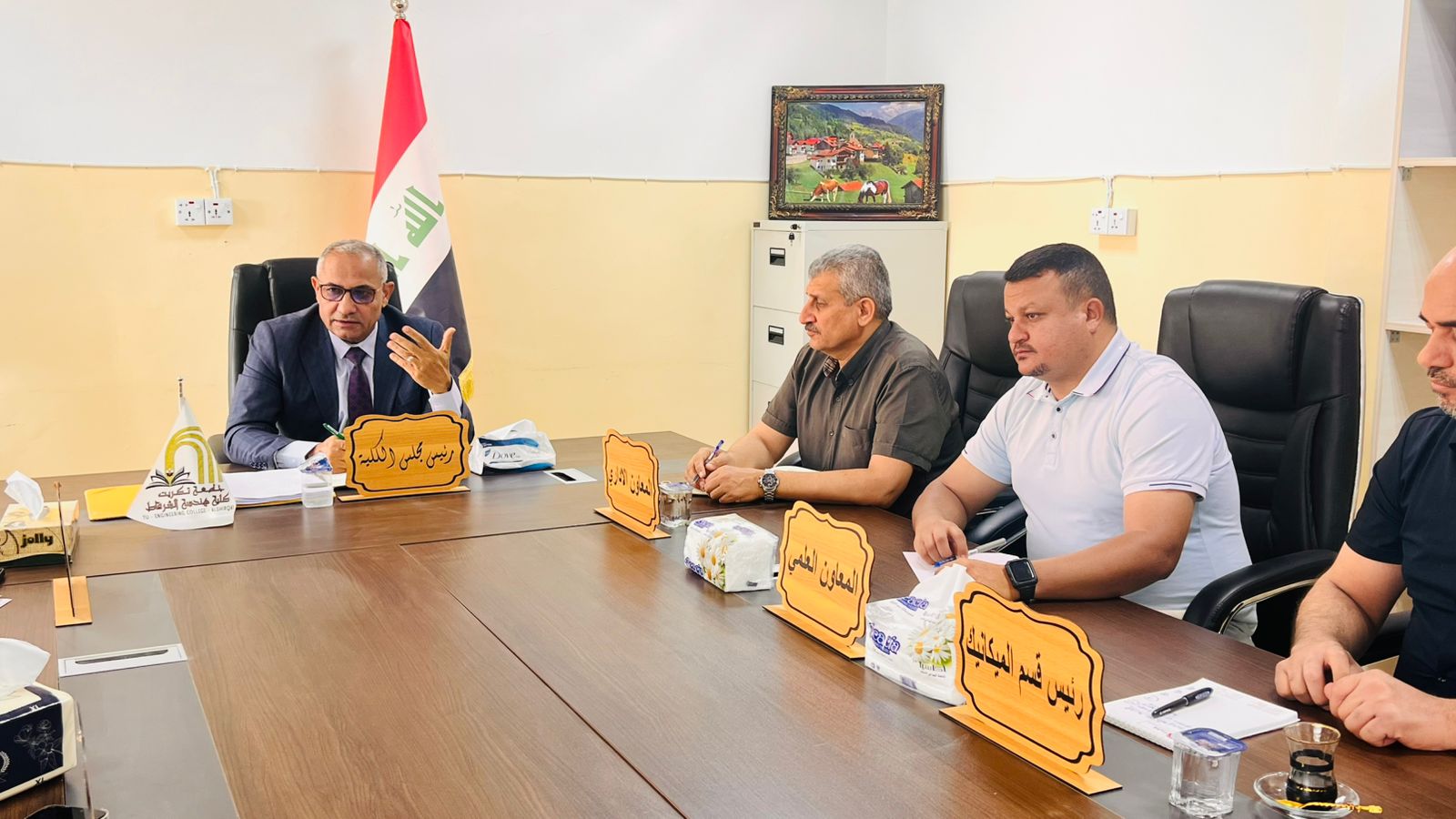 عقد مجلس كلية هندسة الشرقاط برئاسة السيد العميد المحترم واعضاء المجلس المحترمون جلسته الثالثة يوم الاثنين الموافق ٢٠/١٠/٢٠٢٥ في الساعة العاشرة صباحا لمناقشة اهم القضايا التي تخص الكلية ومنها