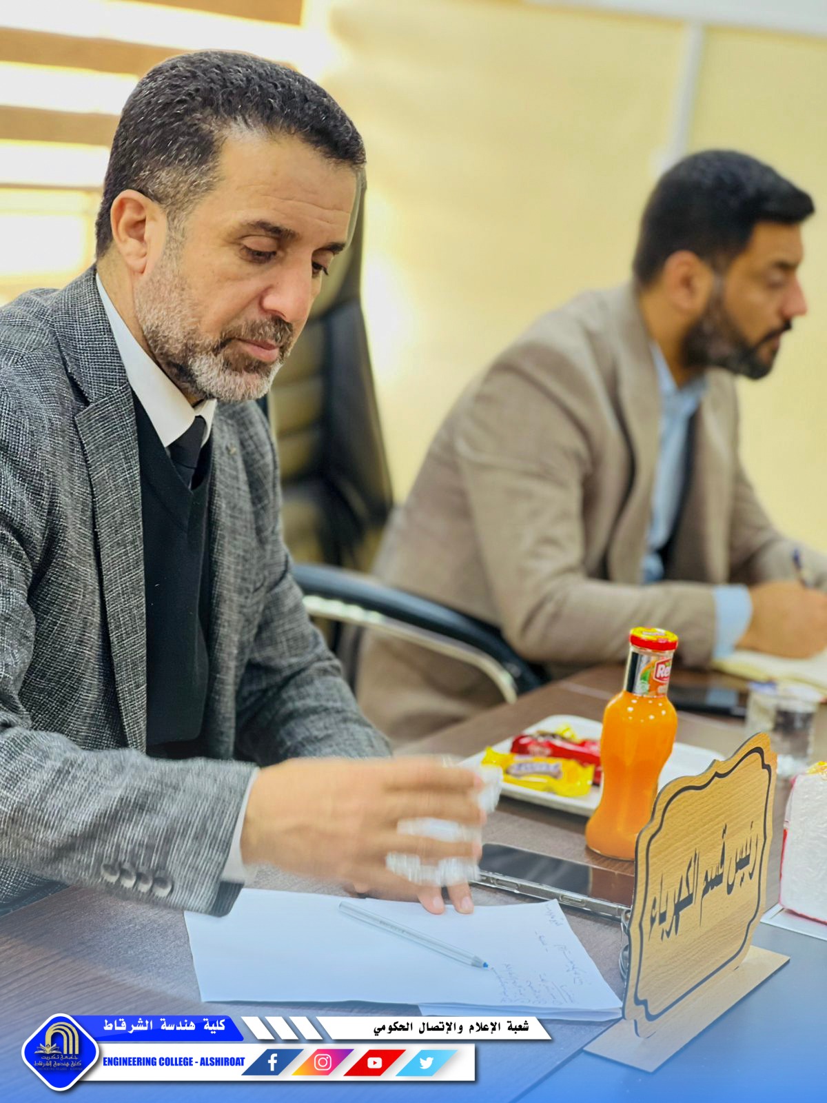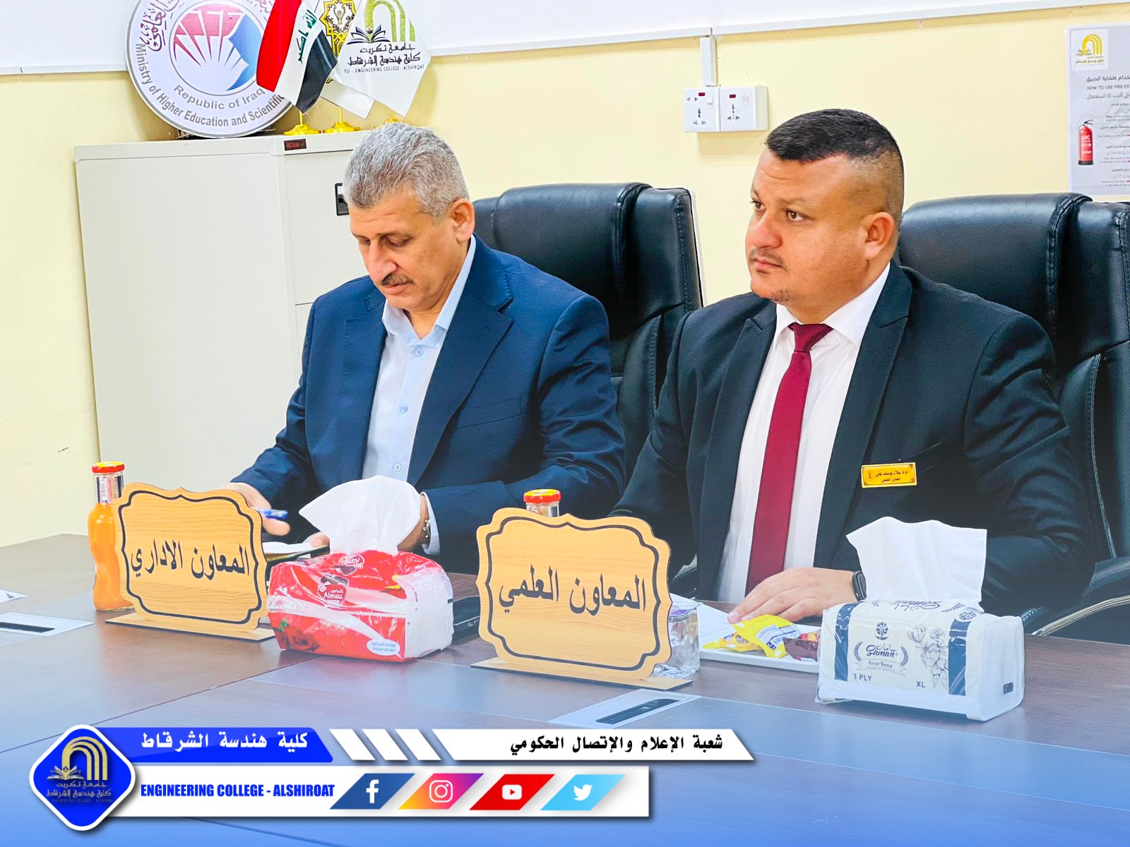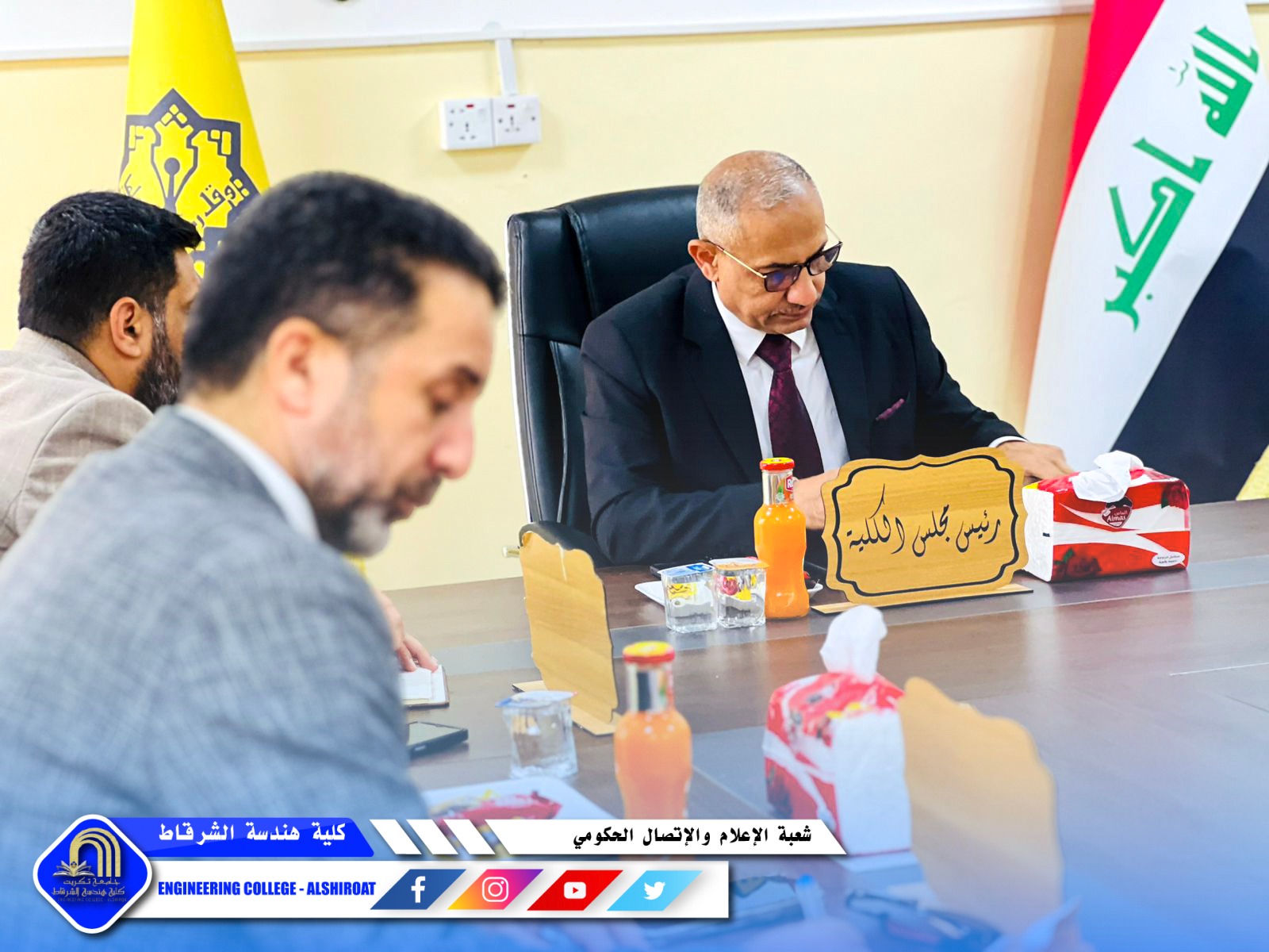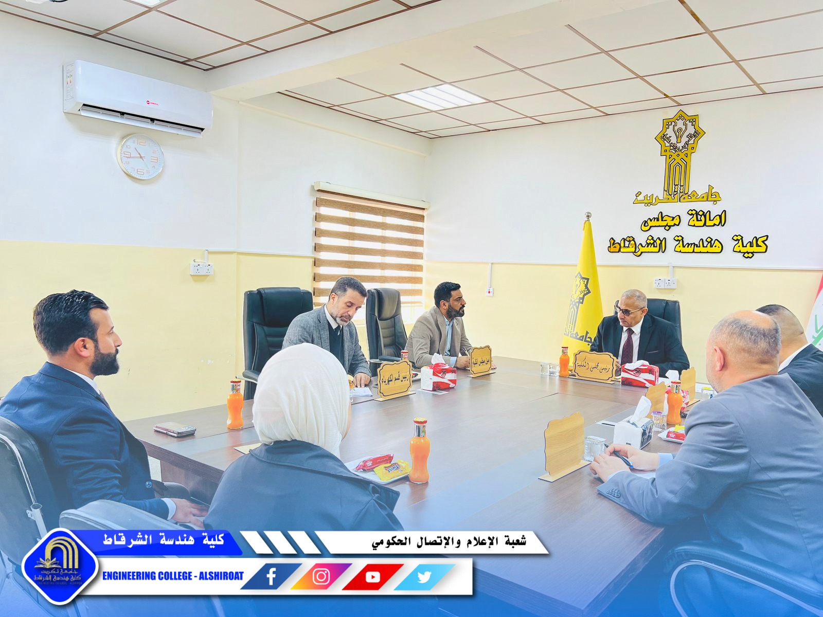 عقد مجلس كلية هندسة الشرقاط جلسته السابعة برئاسة السيد عميد الكلية، برئاسة السيد عميد الكلية الاستاذ الدكتور خميس خلف حسن وبحضور السادة أعضاء المجلس وممثلي الطلبة، لمناقشة عدد من القضايا الأكاديمية والإدارية التي تسهم في تطوير مسيرة الكلية وتعزيز جودة خدماتها التعليمية.