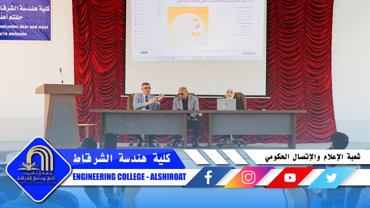 تقيم وحدة شؤون المرأة وبالتعاون مع وحدة الارشاد النفسي والتوجيه التربوي في كلية هندسة الشرقاط وبالتنسيق مع كل من مستشفى الشرقاط العام قسم الصحة النفسية و مركز التعليم المستمر في جامعة تكريت ورشة عمل توعوية بعنوان “بيئة جامعية خالية من المخدرات” بهدف نشر الوعي بين الطلبة حول مخاطر تعاطي المخدرات وتأثيراتها السلبية على الفرد والمجتمع، وتعزيز ثقافة الوقاية داخل الحرم الجامعي.