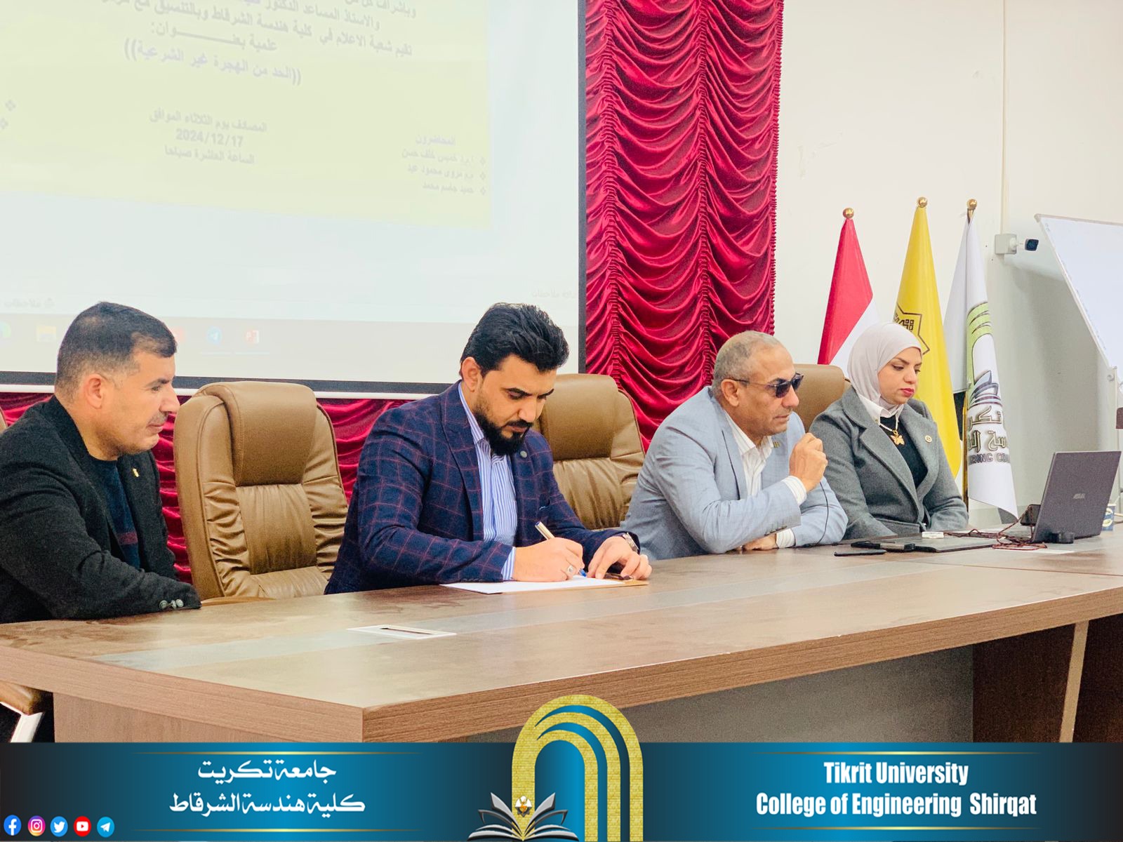 برعاية السيد رئيس جامعة تكريت الاستاذ الدكتور وعد محمود رؤوف وبأشراف كل من السيد عميد كلية هندسة الشرقاط الأستاذ المساعد الدكتور خميس خلف حسن المحترم والاستاذ المساعد الدكتور سياف عبد حسين مدير المحترم مركز التعليم المستمر تقيم شعبة الإعلام ووحدة التأهيل والتوظيف في كلية هندسة الشرقاط و وحدة التعليم المستمرفي الكلية (ندوة تثقيفية ) تحت عـنـــــــــــوان