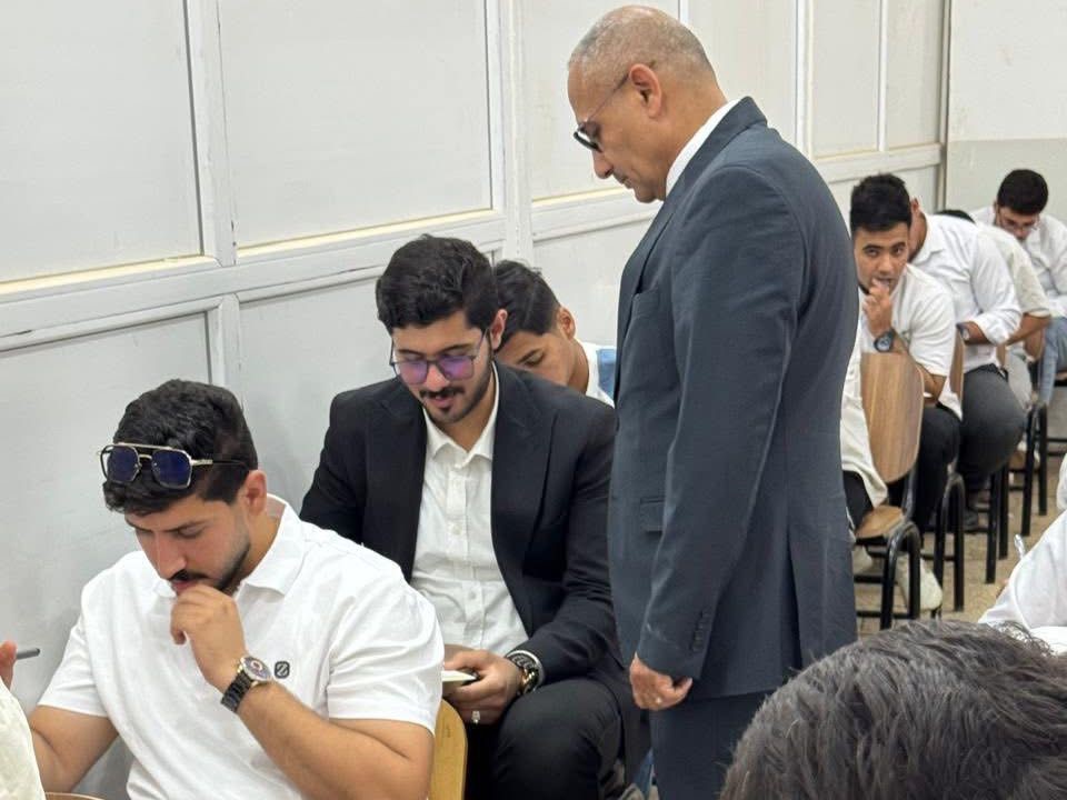 وخلال جولته أثنى السيد عميد الكلية على الجهود المبذولة من قبل رؤساء الأقسام واللجان الامتحانية والمراقبين، مؤكدين أهمية الاستمرار في توفير الأجواء الهادئة والمناسبة التي تمكن الطلبة من أداء امتحاناتهم بكل سلاسة وشفافية. كما تم التأكيد على الالتزام وتوفير المستلزمات اللوجستية كافة لضمان نجاح الامتحانات.