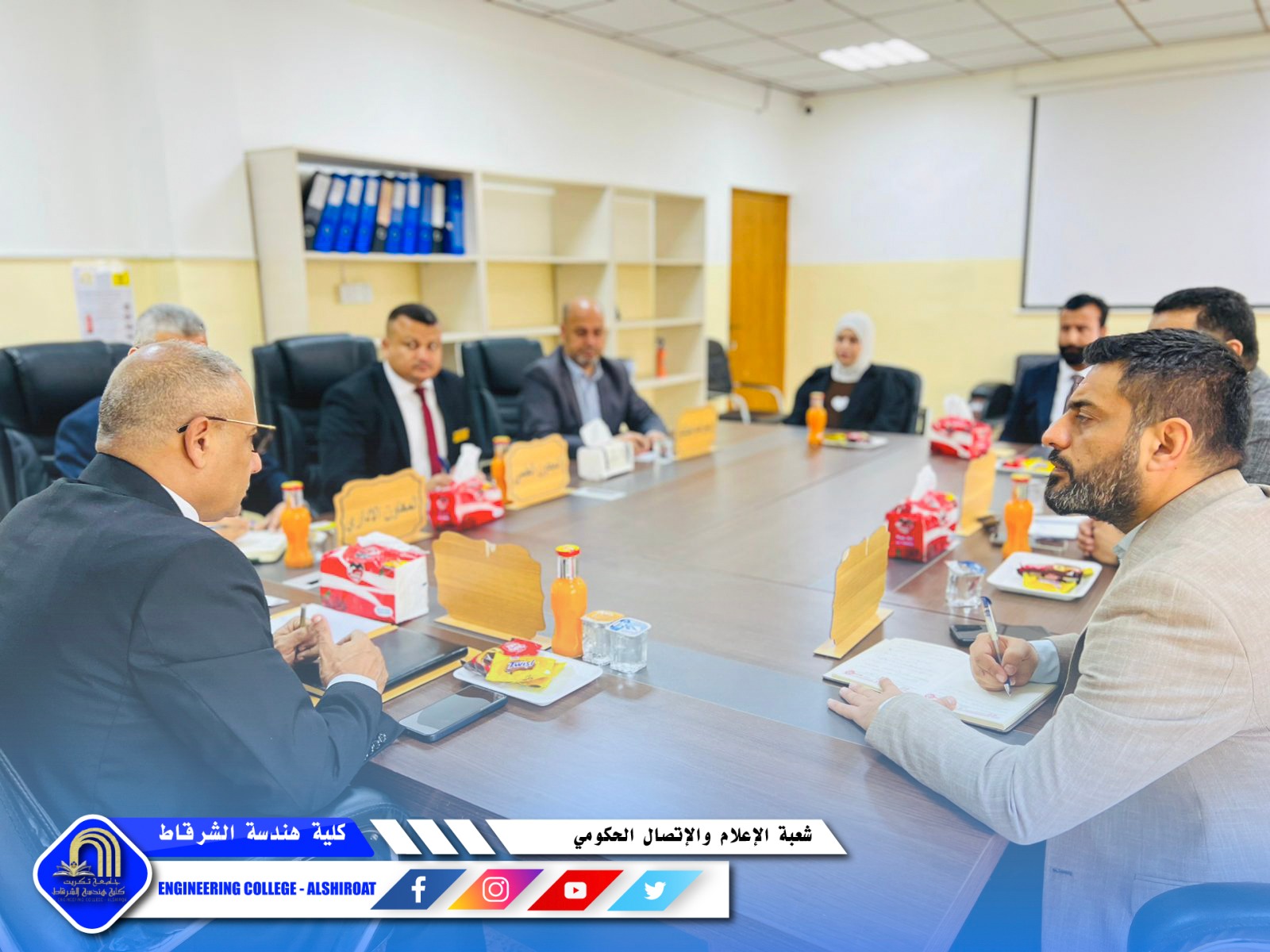 عقد مجلس كلية هندسة الشرقاط جلسته السابعة برئاسة السيد عميد الكلية، برئاسة السيد عميد الكلية الاستاذ الدكتور خميس خلف حسن وبحضور السادة أعضاء المجلس وممثلي الطلبة، لمناقشة عدد من القضايا الأكاديمية والإدارية التي تسهم في تطوير مسيرة الكلية وتعزيز جودة خدماتها التعليمية.